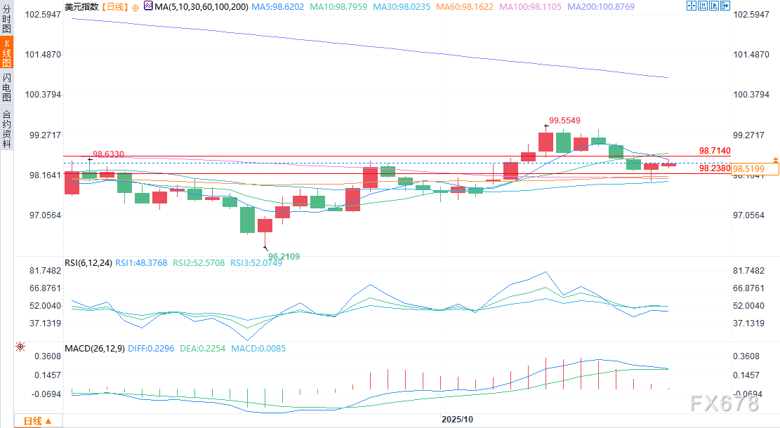 周一(10月20日)美盘时段,美元指数(DXY)小幅走低,测试98.238至98.714之间的关键技术区间。价格走势始终局限在这一回调区间内,交易员同时权衡日本和欧洲的政治动态、中美贸易关系企稳的信号,以及债券市场的谨慎情绪。 ![]() 美元兑日元上涨0.1%,至150.75,此前曾触及151.20。日本央行(BOJ)理事高田创(Hajime Takata)呼吁加息,为日元提供了短暂支撑,但在日经指数上涨3%的背景下,整体市场情绪仍对日元不利。 法国政治紧张局势缓解,欧元小幅走高 法国政治紧张局势出现缓解迹象后,欧元兑美元小幅升至1.1664。但投资者情绪仍较为脆弱,因预算谈判尚未达成共识。 尽管法国总统马克龙政府暂停了养老金改革,但随着第四季度预算讨论临近、财政约束收紧,交易员仍保持谨慎。荷兰国际集团(ING)的弗朗西斯科·佩索莱(Francesco Pesole)指出,若美国信贷情绪进一步恶化,可能推动欧元进一步走高,部分策略师已将1.180美元视为目标位。 政府停摆担忧持续,债券市场走势平稳 美国国债收益率整体持平,10年期国债收益率跌破4%,降至3.995%。目前政府停摆已进入第四周,导致关键经济数据发布延迟,市场对此仍较为敏感。 投资者正等待周五发布的、已推迟的9月消费者物价指数(CPI)报告。该报告将为下周联邦公开市场委员会(FOMC)会议提供关键参考依据。尽管停摆尚未引发利率预期的大幅重定价,但经济学家警告,这可能对国内生产总值(GDP)造成短期拖累。 中国经济数据支撑风险情绪 中国第三季度经济数据好于预期,小幅提振了市场风险情绪。中国经济季度环比增长1.1%,工业产出增长6.5%,推动澳元兑美元(AUD/USD)上涨0.3%,至0.6504。市场参与者将这一数据解读为中国经济对美国关税具备韧性的信号。此外,中美官员的表态暗示关税威胁有所缓和,进一步缓解了投资者的担忧。 美元指数展望:谨慎看空情绪占主导 ![]() 由于美元指数难以守住98.714关口,交易员行为显示该水平阻力强劲。若无法重新站上这一阈值,市场关注点将转向98.238的50%回调位。 美元上行动能持续不足,叠加政治因素的交叉影响与收益率走低,意味着短期内美元或面临看空压力——除非即将发布的CPI数据或联邦公开市场委员会(FOMC)的指引改变整体市场叙事。 北京时间00:20,美元指数报98.4960/5160,跌幅0.04%。 |