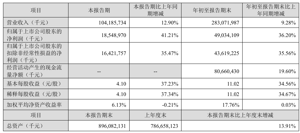 每经记者|黄辛旭 每经编辑|余婷婷 10月20日晚间,宁德时代(300750.SZ)发布三季报并举行业绩说明会。数据显示,宁德时代第三季度单季营业收入为1041.86亿元,同比增长12.9%;归母净利润185.49亿元,同比增长41.21%。前三季度,宁德时代实现营业收入2830.72亿元,同比增长9.28%;归属母公司股东净利润达490.34亿元,同比增长36.2%,这也意味着,宁德时代每日净赚约1.8亿元。 现金流方面,公司前三季度经营活动产生的现金流量净额为806.6亿元,同比增长19.6%。宁德时代方面称,投资活动现金流出较大,主要用于产能扩张与股权投资,净流出572.91亿元;筹资活动现金流量净额为42.77亿元,同比由负转正,主要得益于H股IPO募集资金到账。