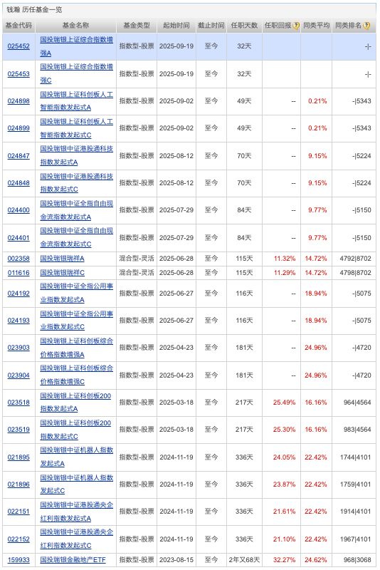 2、ETF主题机会 在5G网络全球部署持续深化的背景下,5G作为数字经济基础设施的潜力正被各产业加速挖掘。当下,5G与AI的融合形成强大的“双轮驱动”效应,进一步释放协同价值,显著提升了5G网络的边际效能与商业潜能。可关注5GETF、通信ETF等产品。 四、明日重点关注新发基金1、基金简称:国投瑞银上证综合指数增强 基金类型:股票型证券投资基金 基金经理:殷瑞飞、钱瀚 业绩比较基准:上证综合指数收益率×95%+商业银行活期存款利率(税后)×5% 基金经理过往业绩: