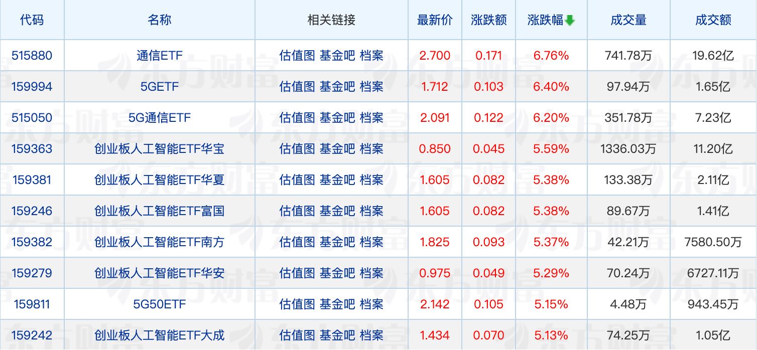 每经记者|肖芮冬 每经编辑|叶峰 天赐良基日报第749期一、今日基金新闻速览1、两只ETF公告份额拆分结果 10月20日,华宝基金公告旗下华宝中证A50ETF、华宝中证A500ETF的份额拆分结果,每1份基金份额被拆为2份。拆分后,两只基金的份额分别增至9.78亿份和12.70亿份,基金份额净值分别降至0.6235元和0.5947元。 2、本周29只新基金启动发行 公开数据显示,本周有29只基金启动发行,其中26只扎堆在周一发行,占本周新发基金近九成,权益基金仍是本周的新发主力。从认购天数来看,29只新基金平均认购天数为28.79天,较此前明显拉长。 3、寒武纪定增完成,广发基金获配12亿元 10月20日晚间,寒武纪公告,发行新增股份3334946股已于10月16日在中国证券登记结算有限责任公司上海分公司办理完毕股份登记手续。公告显示,寒武纪本次发行对象最终确定为13家,其中广发基金获配股数最多,达到101.09万股,获配金额为12.08亿元。 二、知名基金经理最新动态1、陆彬加仓芳源股份 10月20日,芳源股份最新披露的前十大流通股东名单显示,陆彬管理的汇丰晋信智造先锋股票基金、汇丰晋信低碳先锋股票基金均现身,截至三季度末,持股数量依次比二季度末增加217.50万股、48.50万股。 三、今日ETF行情点评1、ETF行情复盘 市场全天震荡反弹,创业板指涨超3%,沪指涨1.36%重返3900点。盘面上,市场热点轮番活跃,CPO概念股全天走强,苹果产业链表现活跃。下跌方面,煤炭股走弱。 ETF涨跌幅方面,通信、5G相关ETF涨超6%。