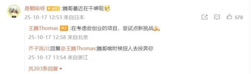 此前,王腾因泄露公司机密信息,且存在利益冲突等严重违规违纪行为,被小米公司辞退。 另据媒体报道,小米集团副总裁、CMO许斐在10月市场体系全员会上宣布,魏思琪接替王腾,为新任中国区市场部总经理。查询发现,魏思琪的微博账号“Cici_老魏”的认证信息为小米手机市场部总经理,小米汽车市场部副总经理。 此外,近日有网友询问“腾哥最近在干嘛呢”,王腾首次回应称“在考虑些创业的项目,尝试点新挑战”。