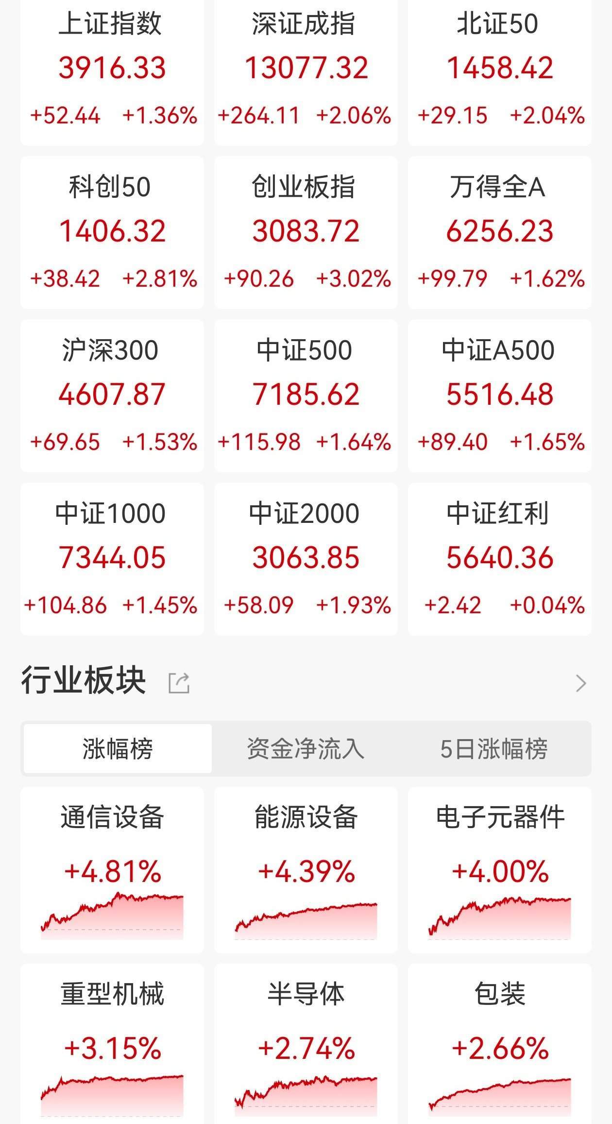 格隆汇10月21日|A股主要指数今日集体大涨,截至收盘,沪指涨1.36%报3916点,深证成指涨2.06%,创业板指涨3.02%,科创50指数涨2.55%。全市场成交额1.89万亿元,较前一交易日增量1414亿元,超4600股上涨。