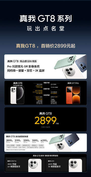 售价方面,真我GT8 12GB+256GB版本2899元;16GB+256GB版本3199元;12GB+512GB版本3399元;16GB+512GB版本3599元;16GB+1TB版本4099元。 真我GT8Pro 12GB+256GB版本3999元;16GB+256GB版本4299元;12GB+512GB版本4499元;16GB+512GB版本4699元;16GB+1TB版本5199元。
