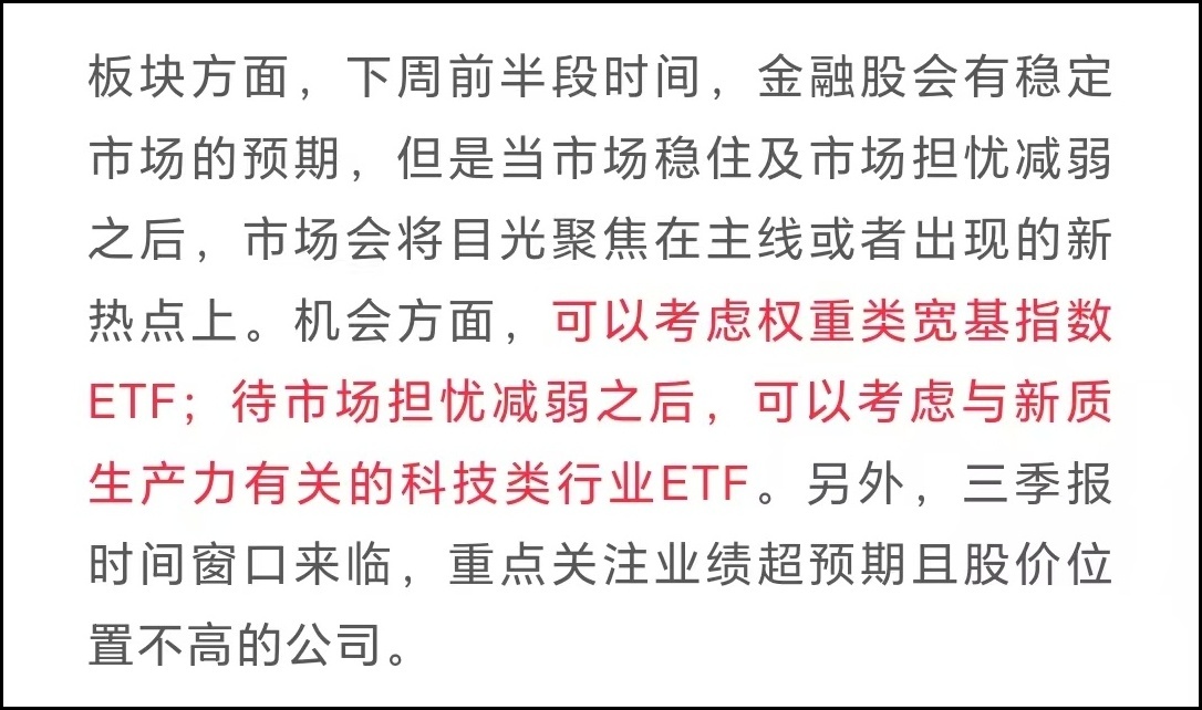 ▲图片来源:截图自达哥10月12日的文章 目前来看,上周以来的市场表现,基本印证了达哥的判断。 因此,接下来就可以关注AI、创新药、固态电池等与新质生产力有关的行业了。倘若交易能力差,那么ETF会是不错的选择。 最后,达哥作一个总结:今天虽然市场成交额仍低于2万亿元,但AI硬件的大涨带动市场情绪明显回暖,即便短期再度震荡,也不妨碍大市及主线板块后续的震荡上行。板块方面,关注牛市几朵“金花”板块及对应的ETF。 PS:想了解达哥的更多观点,或想和达哥交流,请关注微信公众号“道达号”。 (张道达) 根据国家有关部门的最新规定,本手记不涉及任何操作建议,入市风险自担。 封面图片来源:图片来源:每日经济新闻 文多 摄 |