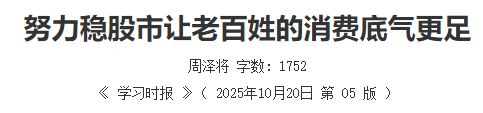 近期,市场震荡,不少投资者对行情感到动摇或彷徨。 实际上,健康的股市不仅关乎投资回报,更与每个人的消费信心和经济活力息息相关。 10月20日《学习时报》刊登的两篇文章,深入阐述了资本市场与消费增长之间的内在联系,为我们理解股市上涨的意义提供了重要视角。