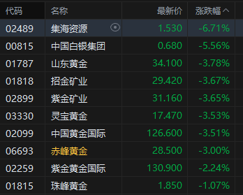 黄金股大跌,山东黄金跌超3%。周二,现货黄金创下10多年来最大单日百分比跌幅。花旗银行预计,美国政府停摆结束及中美协议公布可能推动黄金在未来2-3周内进入震荡整理阶段。花旗银行表示短期内看跌黄金(此前看涨,现转为看跌),设定0-3个月目标价为4000美元/盎司。
