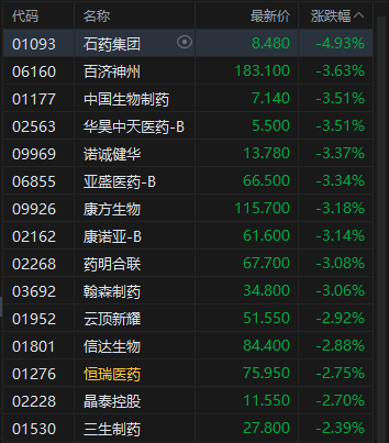 盘面上,大型科技股集体弱势大市承压明显,其中,网易跌超5%,百度、阿里巴巴跌近3%,腾讯、京东跌近2%,小米、美团均下跌;升势降温!黄金创四年来最大单日跌幅,黄金股继续跌势,中国白银集团跌5.5%,山东黄金(600547)、招金矿业、中国黄金国际、灵宝黄金均跌超3%,铜等有色金属股跟跌;半导体芯片股、光伏股、锂电股、苹果概念股、手游股、钢铁股、煤炭股、汽车股、内险股、中资券商股普遍下跌。