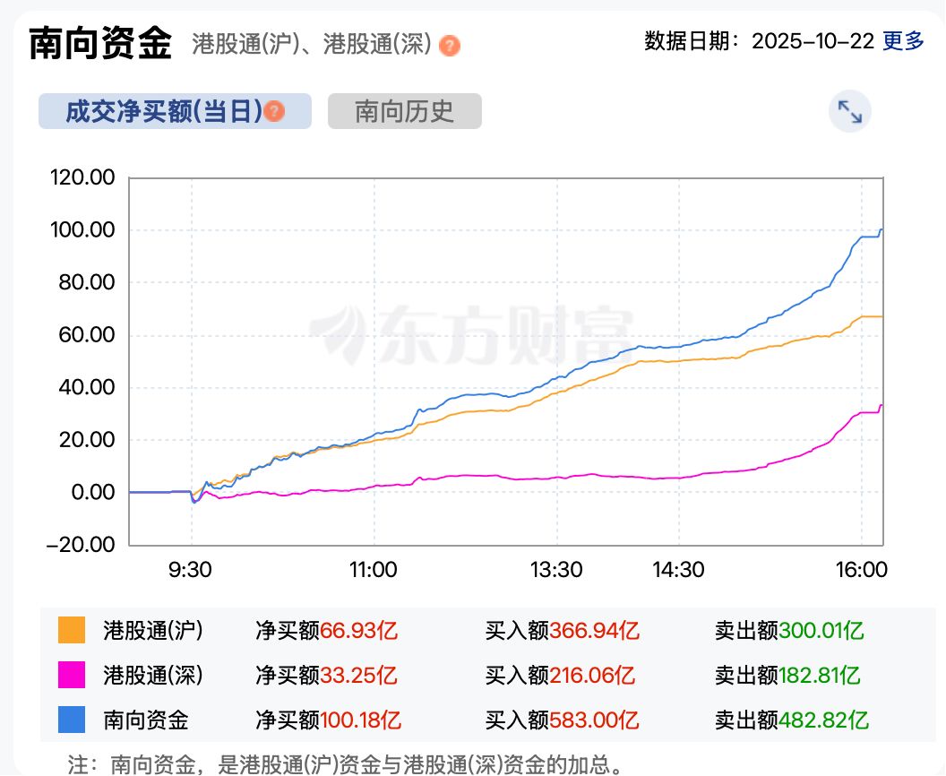 消息面,美银重申泡泡玛特“买入”评级,预计第四季将持续推出新产品。美银证券发表研究报告指出,泡泡玛特第三季业绩表现强劲,收入按年增长245%至250%,超出市场预期。该行重申“买入”评级,目标价为400港元。 此外,中银国际上调泡泡玛特目标价至405.6港元,维持“买入”评级。 瑞银上调泡泡玛特目标价至435港元;摩根大通上调泡泡玛特目标价至350港元;里昂维持泡泡玛特“跑赢大市”评级。 其他方面,盘面上,科网股全线下跌,网易跌超3%,联想跌超2%,快手、百度、阿里巴巴、哔哩哔哩、京东跌超1%;黄金股走弱,山东黄金跌超2%,老铺黄金跌超8%;广和通上市首日跌超11%。 资金方面,南向资金重新回流。截至收盘,南向资金净买入港股金额超100亿港元。