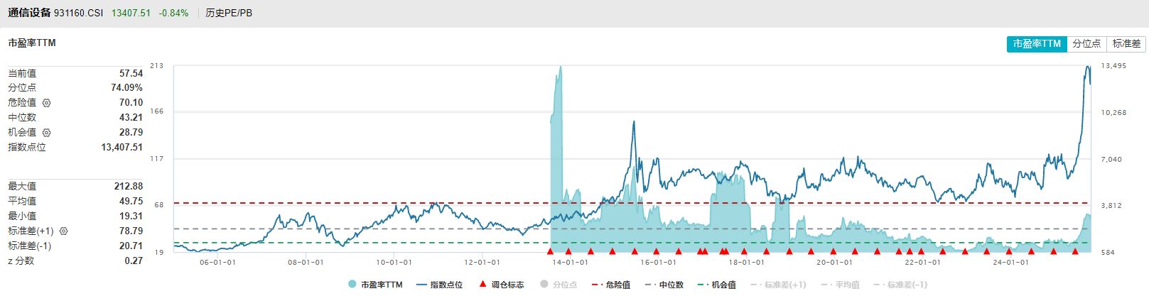 再从估值水平来看,Wind数据显示,国证通信指数目前的市盈率TTM还在历史30%分位以下,而中证全指通信设备指数的市盈率TTM已经回升到了历史70%分位以上。