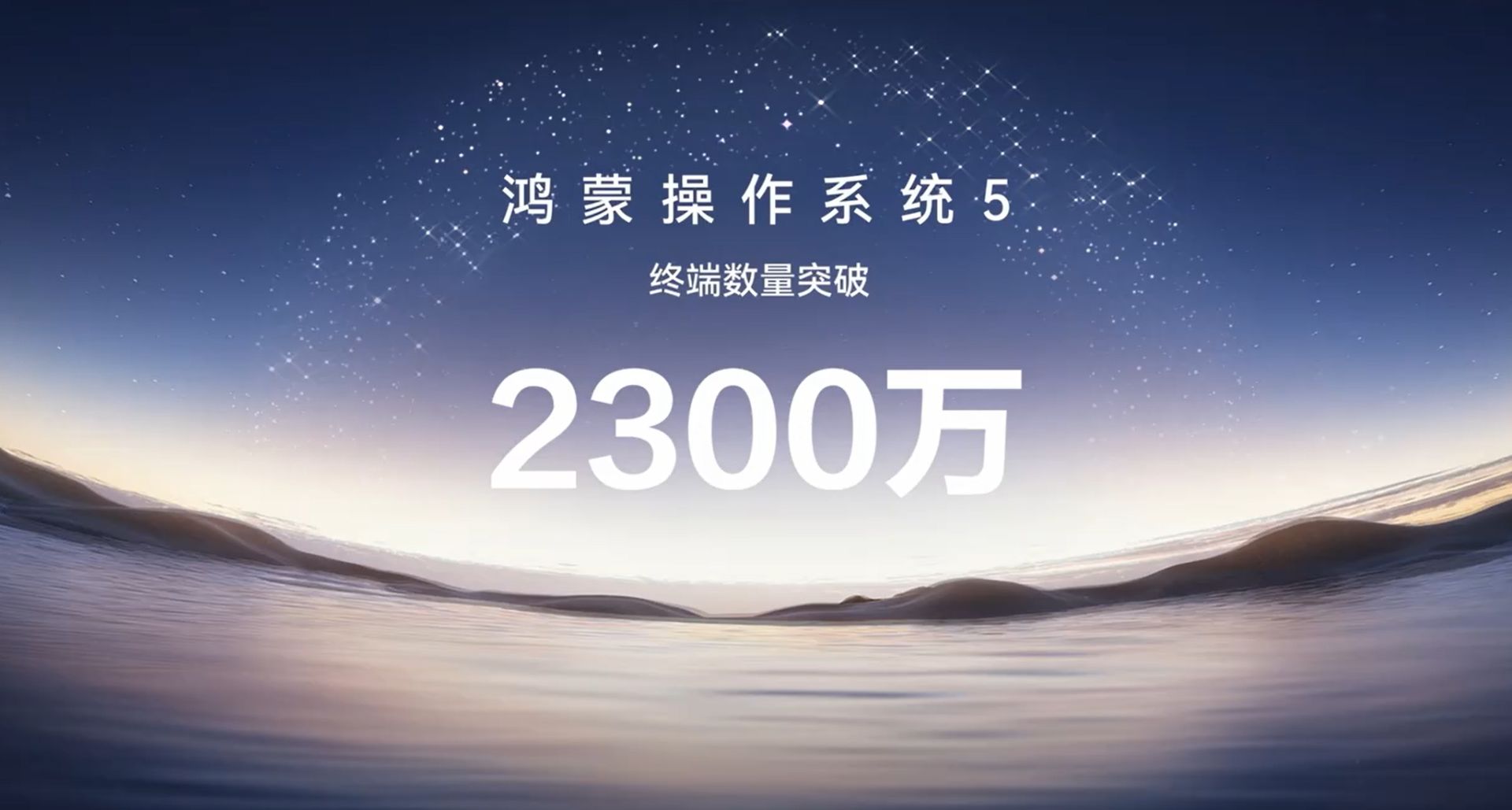 图片来源:“鸿蒙操作系统6·特别发布”直播 余承东宣布,鸿蒙5终端设备数量突破2300万,是智能终端发展史上最快的操作系统。
