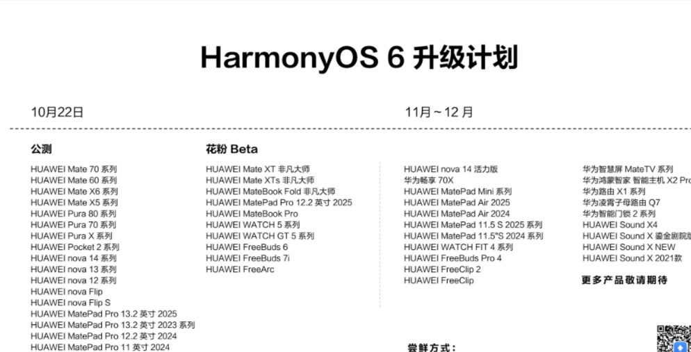 图源:企业供图 据了解,10月22日起,鸿蒙6面向首批90多款机型陆续开放升级。首批公测机型包括Mate 70、Mate 60、Pura 80 系列、Mate x6 系列等,11月-12月则开放至nova 14 活力版、MatePad系列等。此外,华为预告称,面向企业用户打造的鸿蒙电脑企业版OS也即将发布。 (责任编辑:郭健东 )
