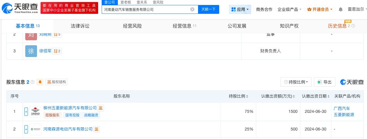 图片来源:天眼查 不仅如此,五菱新能源还与森源电动汽车合资成立了河南菱动汽车销售服务有限公司,分别持股75%和25%。该公司成立于2024年,经营范围为新能源汽车整车销售、汽车销售等,五菱新能源为控股股东。 袁智军在此前的采访中表示,五菱新能源计划在三轮融资后上市。按照五菱新能源计划,2022年至2024年的目标是逐步将商用车推向市场并做大规模;2025年至2027年实现商用车、乘用车共同发展;2028年至2030年则会将产品结构重心“由商转乘”。 每日经济新闻 (责任编辑:王治强 HF013)