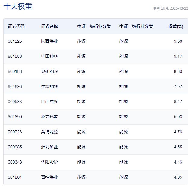 中证煤炭指数主要权重股 封面图片来源:每日经济新闻 |