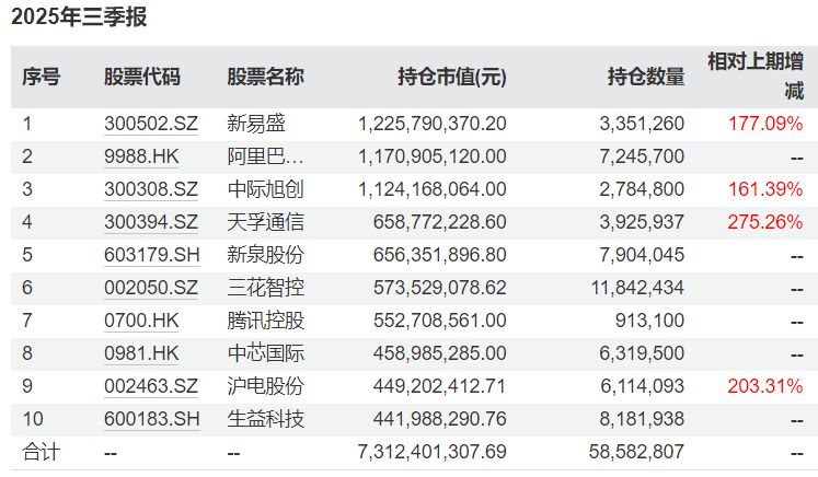 每经记者|黄小聪 每经编辑|彭水萍 今日,又有多只基金披露了2025年三季报,其中包括中欧数字经济混合,该基金前三季度的收益排在业绩榜第三位。 记者注意到,该基金不仅在三季度规模变化明显,单季度累计申购超过60亿份,而且从持仓来看,三季度前十大重仓股更换了6只,胜宏科技、快手-W、小鹏汽车-W等退出前十大,三花智控、腾讯控股、中芯国际等新进前十大。 中欧数字经济混合三季度大调仓翻看今年基金业绩榜单,中欧数字经济混合A前三季度收益超过140%,位列第三位。亮眼的表现自然吸引了众多投资者的目光。 最新披露的三季报显示,该基金在三季度获得了超60亿份的申购,虽然同时有约27亿份的赎回,但整体份额规模大幅增长,从二季度末的约9亿份大增到三季度末的约43亿份。