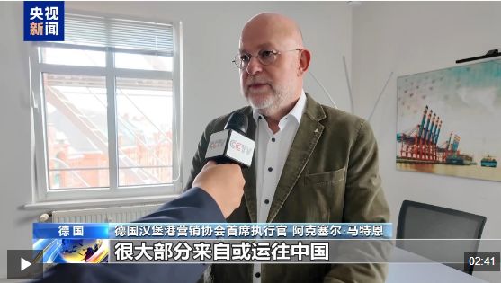 另据央视新闻7月26日消息,汉堡港是德国最大的港口,也是欧洲重要的海铁联运枢纽。汉堡港营销协会首席执行官阿克塞尔·马特恩此前在接受总台记者采访时表示,今年是中国和欧盟建交50周年,过去几十年来,汉堡港是中国和欧盟经贸合作的缩影,见证了中国和欧盟经贸合作规模不断扩大。 德国汉堡港营销协会首席执行官 阿克塞尔·马特恩:目前,汉堡港处理的货物很大部分来自或运往中国,占汉堡港所有货物的30%,因此,与中国以及中国港口的联系对汉堡港至关重要。我们与中国保持着非常密切的交流,中国连续多年是汉堡港最大的贸易伙伴。