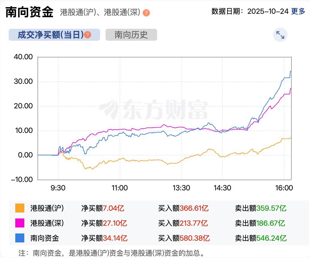 资金方面,截至收盘,南向资金净买入港股金额超34亿港元。
