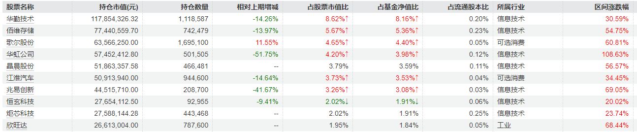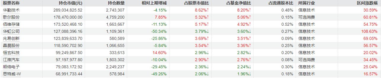 10月27日,信达澳亚基金冯明远管理的4只公募基金披露三季度报告。从重仓股变化来看,基金经理此前重仓的品种没有发生较大改变,但在持仓数量上变化较明显,普遍较今年二季度末有所减持。 其中,华虹公司、兆易创新、思特威-W等在三季度被环比减持明显,有的基金持仓数量较此前下降50%以上。歌尔股份、恒玄科技则获得加仓,部分基金新进重仓晶晨股份、炬芯科技。 基金经理在季报中指出,基金持仓以电子、新能源、通信、汽车零部件、机械行业为主;AI、机器人等新技术的发展将积极拉动相关产业的发展,有利于基金为投资者创造价值。 4只基金重仓配置减仓明显,歌尔股份、恒玄科技获加仓冯明远管理的信澳新能源产业等多只基金在此前新能源以及科技题材行情中表现不俗,被业内称为科技“猎手”。10月27日,他管理的4只公募基金发布了三季报。 从三季报持仓来看,重仓股的持仓数量变化明显,华虹公司、兆易创新、思特威-W等在三季度内均出现环比减持。 以信澳研究优选为例,Wind统计显示,截至三季度末,该基金持有华虹公司50.15万股,较二季度末持仓减少51.75%,也是所有在管基金中单只重仓股减持比例最高的一例。此外,兆易创新也较二季度末持仓减少约41.67%。
