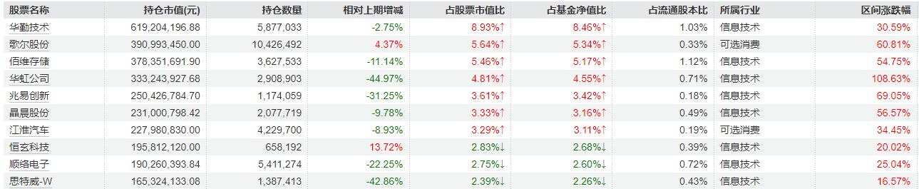 信澳研究优选三季报重仓股,图片来源:Wind,夏天再以信澳新能源产业为例,冯明远在今年一季度大举加仓思特威-W后,二季度、三季度对该股均进行减持。截至三季度末,该基金持仓数量为138.74万股,较二季度末减持幅度达到42.86%。