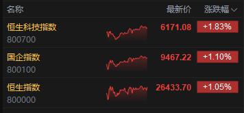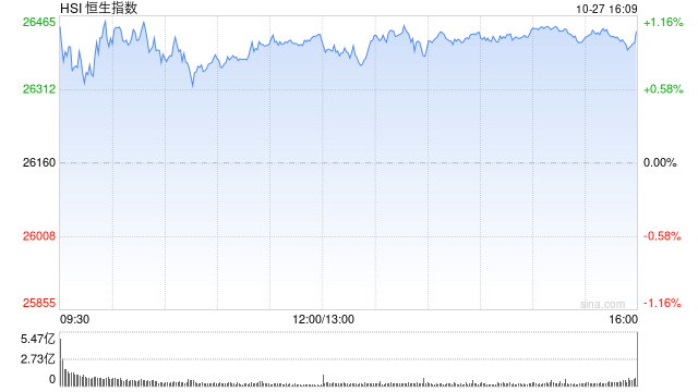 10月27日消息,港股三大指数集体上涨。截至收盘,恒生指数涨1.05%,报26433.70点,恒生科技指数涨1.83%,国企指数涨1.10%。盘面上,科网股涨多跌少,百度涨超6%,阿里巴巴涨超3%,京东、腾讯涨超2%,联想、美团、快手涨超1%;半导体板块强势,英诺赛科涨超12%;电气设备股涨幅居前,东方电气(600875)涨超9%;加密货币概念股普涨,新火科技控股涨超17%。