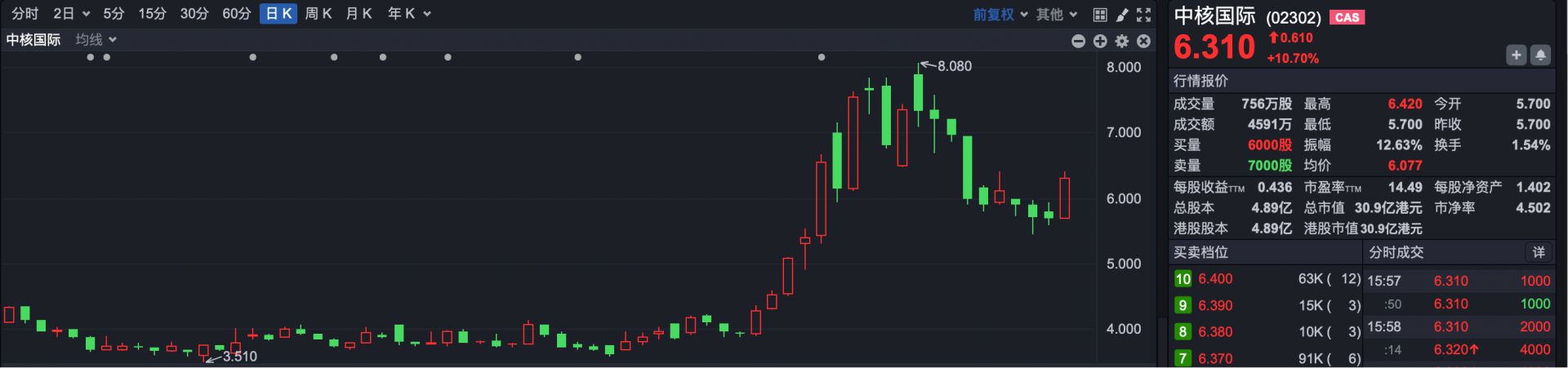 核电股涨幅居前,中核国际(02302.HK)涨超10%,东方电气(01072.HK)涨超9%,中广核能科技(00611.HK)涨超6%,中广核新能源(01811.HK)涨超3%。消息面,国家能源局核电司司长曾亚川日前介绍,2024年全球核电发电量已创近十年新高,且增长预期依然强劲。多家国际权威机构连续四年上调核能发展预期,预计到2050年,全球核电装机规模将突破9亿千瓦,实现翻倍增长。