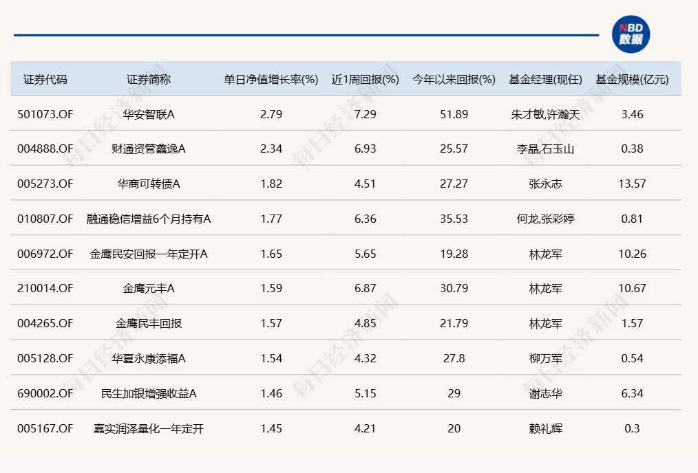 3.单日债基涨跌幅榜