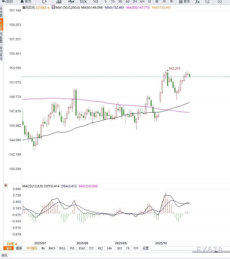 周二亚洲早盘,日元兑主要货币普遍上涨,USD/JPY自153.30高位回落至152关口下方。投资者在两大央行政策会议前调整仓位,日元空头选择阶段性获利了结。 ![]() 东京外汇研究所经济学家高桥俊介(Shunsuke Takahashi)指出: “BoJ在通胀持续上行的背景下面临政策调整压力,而木内的表态暗示政府不愿看到过度贬值,这为日元提供了短线支撑。” 美国方面,市场普遍预计美联储将在为期两天的政策会议结束后宣布降息25个基点至3.75%-4.00%区间。此外,投资者已基本消化年内再降息一次的可能性。 该预期压制美元买盘,使得美元兑日元的上行动能减弱。 然而,日元的涨势仍受到新首相高市早苗的财政政策立场制约。 高市以其“积极财政刺激”立场著称,她已表示将通过扩张性支出计划提振经济增长,这或延缓BoJ进一步收紧政策的进程。 市场将密切关注日本央行本周四的政策更新,以寻求12月加息的信号。 从技术角度看,USD/JPY短线呈现高位回落格局。价格在53.30附近遭遇明显阻力,若跌破152.00整数位支撑,将打开进一步下行空间,目标指向151.50附近,若该区间失守,或将下探151.00关口。 上行方面,初步阻力位于153.00附近,其后依次为153.30与154.00。若多头重新掌控节奏,价格或延伸至154.50及155.00心理关口。 RSI回落至中性区下方,MACD出现死叉迹象,短线偏空信号增强。 ![]() 当前日元的走势呈现出“政策预期与干预预期交织”的复杂格局。 政府官员的表态虽短暂提振了日元,但高市早苗的财政扩张计划意味着货币政策收紧空间有限。 若本周日本央行暗示未来加息路径,日元或迎来阶段性走强;反之,若政策基调偏鸽,汇率可能重返153上方。 总体而言,本周的双央行会议将成为决定美元/日元方向的关键催化剂,市场短线波动风险显著上升。 |