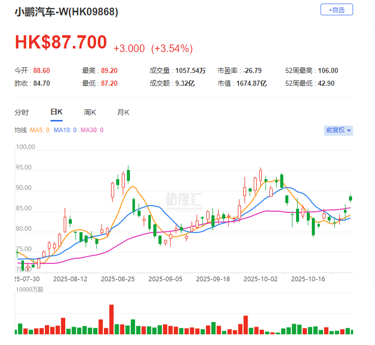 格隆汇10月28日|小鹏汽车(9868.HK)港股市值达到1674亿港元,盘中超过理想汽车(2015.HK)港股市值(1657亿港元)。今年以来,小鹏港股涨幅已超过80%。28日美股收盘,小鹏汽车(XPEV.N)收涨6.48%,理想汽车(LI.O)收跌1.6%,小鹏汽车美股市值219.81亿美元超过理想汽车(217.61亿美元)2亿美元。