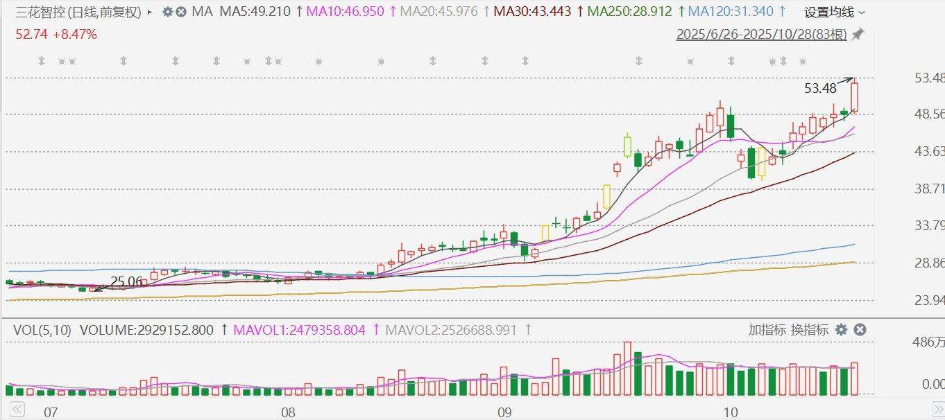 格隆汇10月28日|机器人概念股三花智控(002050)A股午后拉升触及涨停,股价创历史新高,年内累涨126%;港股亦拉升涨近9%。