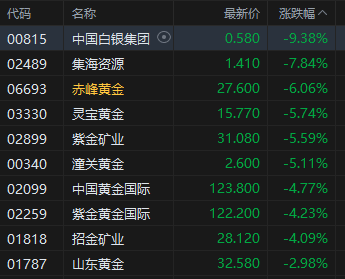 黄金股普跌,赤峰黄金跌超6%。现货黄金一度失守3930美元/盎司。凯投宏观(Capital Economics)的分析师日前表示,他们认为上周的下跌是下行趋势的开始,金价今年的大部分涨幅可能会被抹去。凯投宏观周一下调了黄金价格预期。该公司首席市场经济学家John Higgins表示,到明年年底,金价将跌至每盎司3500美元。这意味着金价将从目前的水平下跌超过12%。
