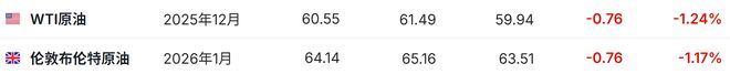 3. 截至发稿,WTI原油跌1.24%,报60.55美元/桶。布伦特原油跌1.17%,报64.14美元/桶。
