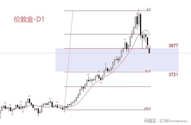 技术角度看,黄金日线在本月20日触顶,随后开启剧烈下跌。前一轮标志性上涨波段的0.382分位(3977美元)已经被跌破,继续下跌将考验0.618分位(3721美元)。在没有突发消息的情况下,考虑到下跌波段力度较强,0.618分位在中期内被触及的概率较高。 ATFX风险提示、免责条款、特别声明: 市场有风险,投资需谨慎。以上内容仅代表分析师个人观点,不构成任何操作建议。请勿将本报告视为唯一参考依据。在不同时期,分析师的观点可能发生变化,更新内容不会另行通知。ATFX汇评:黄金跌破4000美元,创10月7日以来新 ATFX汇评:昨日黄金延续短期跌势,最低点3971美元,突破4000美元关口。今日盘中,黄金日K线持续收阴,最低点3936美元,距离4000美元关口越来越远。看多人士期望的黄金4000美元附近反弹行情并未出现,意味着主流资金仍一致看空短期金价。 消息面较为清淡。美国总统特朗普结束菲律宾访问,今日来到日本,将与日本新首相高市早苗进行会晤。明日,特朗普还将出席在韩国举办的APEC亚太经合组织峰会。特朗普虽然回答了很多当前市场关心的敏感话题,比如对加拿大的关税、阿根廷米莱胜选、乌克兰问题等等,但都没有激发市场新一轮避险情绪的升温。