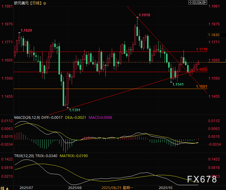 周二(10月28日)欧元兑美元继续反弹,汇价已经连续第五个交易日走高,由上周1.1580的低点攀升至1.1650附近。欧元持续升值,一度突破1.1650,创下一周以来的新高。尽管上涨势头仍显脆弱,在1.1670和1.1730处面临阻力,但美中贸易关系出现缓和迹象、美国与日本达成协议,以及市场对美联储周三进一步降息的预期,共同推高了风险偏好,令避险属性的美元承压,对欧元形成了支撑。 ![]() 结合当前全球风险环境,欧元兑美元的表现或许本应更强劲一些。荷兰国际集团(ING)外汇分析师克里斯·特纳指出,美中贸易问题缓和将成为全球贸易的利好消息,有助于延续商业情绪中初现的乐观态势。 上周五欧元区采购经理人指数(PMI)意外回升,这一现象与今年夏天经济学家们逐渐滋生的悲观情绪形成了鲜明对比。今日,欧洲央行(ECB)还将发布消费者通胀预期调查,市场预计三年期通胀预期将维持在2.5%的水平,这一结果或使本周四的欧洲央行会议呈现非常中性的基调。 更关键的争论可能要留到12月的央行会议——届时2028年消费者价格指数(CPI)预测将公布,若该数值低于2.05,将为鸽派立场打开空间。 同时本周四美、日、欧元区三个央行的利率决议,如果出现超预期结果,汇市会出现巨震。 贸易与矿产协议提振市场情绪限制美元走强 美国总统唐纳德·特朗普在亚洲之行期间,与日本首相高市早苗举行了会晤,并与日本签署了稀土及其他关键矿产的开采与加工保障框架协议,这一消息助力提振了投资者情绪。 同时,特朗普对中国保持积极态度,本周早些时候,美国财政部长斯科特·贝森特证实,100%关税威胁已被搁置,原因是中国在周末于马来西亚举行的会谈中同意推迟实施稀土限制措施。 受此影响近期受避险资金青睐的美元陷入了调整。 美联储降息预期主导美元短期走弱 与此同时,上周公布的美国通胀数据弱于预期,这基本确认了美联储将在周三把联邦基金利率下调25个基点。由于美国政府停摆已进入第五周,美联储缺乏关键宏观经济数据支撑其决策,但市场预计该央行将暗示今年可能在12月前共进行三次降息,若未能释放这一信号,美元或出现反弹。 在此之前,美国房价指数和消费者信心数据可能为美元相关货币对提供一定指引。不过,只要投资者的风险偏好持续存在,美元大幅回升的可能性似乎不大。 积极风险情绪支撑欧元走势 积极的市场情绪持续支撑欧元走强,对避险美元形成压制,这一影响抵消了欧元区低迷经济数据的冲击,例如11月德国GFK消费者信心指数恶化程度超出预期。 德国GFK研究机构发布的数据显示,11月德国消费者信心指数从9月的-22.3降至-24.1,为过去七个月的最差水平,且低于市场预期的小幅改善至-22.0。 美国财政部长贝森特呼吁日本实施“稳健的货币政策”,这对日本央行构成一定压力,或促使其继续推进货币紧缩周期。 技术分析: 欧元兑美元日线图可以看出,20、30日均线仍然方向朝下,压制了欧元的反弹。 这里需要观察的是欧元区间震荡会加快欧元均线下行和拐头,如此便可将均线的阻力转化为支撑。 由于1.1600-1.1700为长期交易密集区且月初欧元处在高位,只要汇价能稳住,20、30日均线将快速进行修复,能快速下降并且拐头成为汇价的技术支撑。 目前支撑位依然是1.1600与上升趋势线围成的区域,压力位在1.1718附近。 ![]() 北京时间17:51,欧元兑美元现报1.1655/56。 |