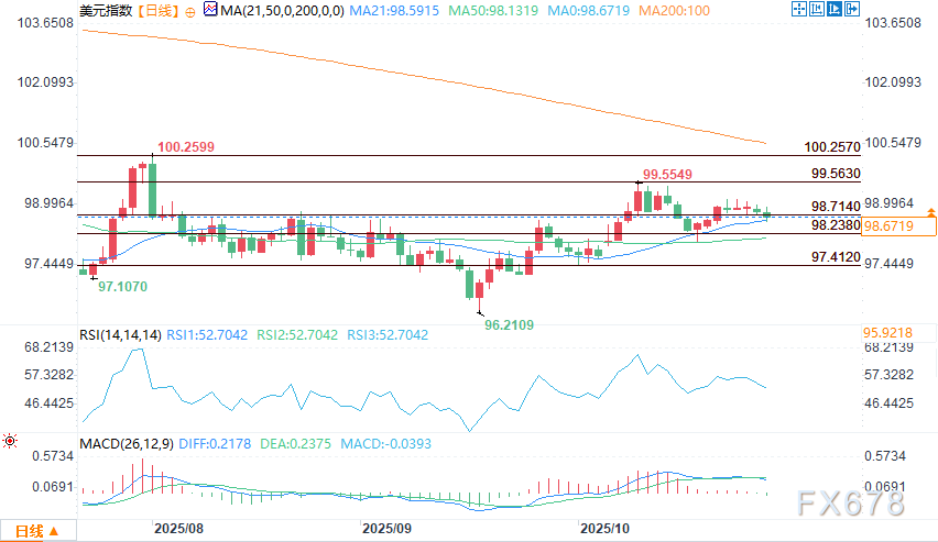 周二(10月28日),美元指数在周二盘中承压,延续了自10月22日高点99.139以来的四日回调,跌至98.668。价格已突破98.797的小枢纽点和98.650的61.8%回撤位,今日低点触及98.565。交易员们正在关注98.132的50日移动平均线,它可能成为逢低买入者的支撑位,也可能在失守后引发向97.462的更深幅下跌。 ![]() 美联储降息已被定价,关注鲍威尔的指引 在美联储做出决策之前,收益率曲线整体小幅走低,10年期国债收益率徘徊在略低于4%的水平,为3.976%。债券市场已完全消化了25个基点的降息预期,将联邦基金利率区间降至3.75%-4.00%。交易员们还认为12月再次降息的可能性接近80%,但这一预期尚未确定。 由于政府停摆,经济数据稀缺,市场只能依靠假设,而鲍威尔的基调将格外重要。如果他暗示可能会有更多降息举措,美元指数可能会继续承压。如果他持反对态度,美元可能会反弹,但鉴于通胀受到抑制且就业增长放缓,鲍威尔在此采取鹰派立场的理由并不充分。 贝森特推动日本央行实现利率正常化,日元走强 在美国财政部长斯科特·贝森特呼吁日本央行采取“稳健的货币政策”后,美元兑日元也出现下跌。交易员将此视为对加息的暗示,推动美元兑日元汇率降至151.225。市场目前正在观察日本央行是否会在即将召开的会议上给出政策收紧的时间表。 特朗普与中国领导人会晤让贸易希望犹存 与此同时,对中美贸易取得突破的希望有助于维持风险偏好,同时也使美元走软。两国元首周四的会晤现在是一个不确定因素。即使全面解决方案仍难以实现,贸易方面的任何进展都可能提振股市,并进一步给美元带来压力。 展望:在鲍威尔或数据改变看法之前倾向看跌 ![]() 除非鲍威尔发出暂停降息的信号,或者通胀数据迫使市场重新思考,否则美元仍有进一步走弱的倾向。技术面来看,美元指数倾向于测试98.132的50日移动平均线。如果跌破该水平,卖方可能会向97.462施压。市场不会无缘无故地追逐强势,而目前,市场没有找到这样的理由。 |