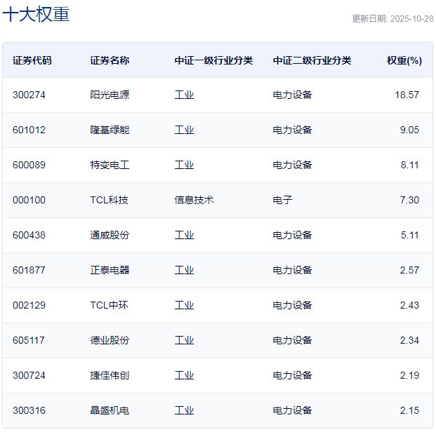 中证光伏产业指数主要权重股 封面图片来源:图片来源:视觉中国-VCG211277769701 |