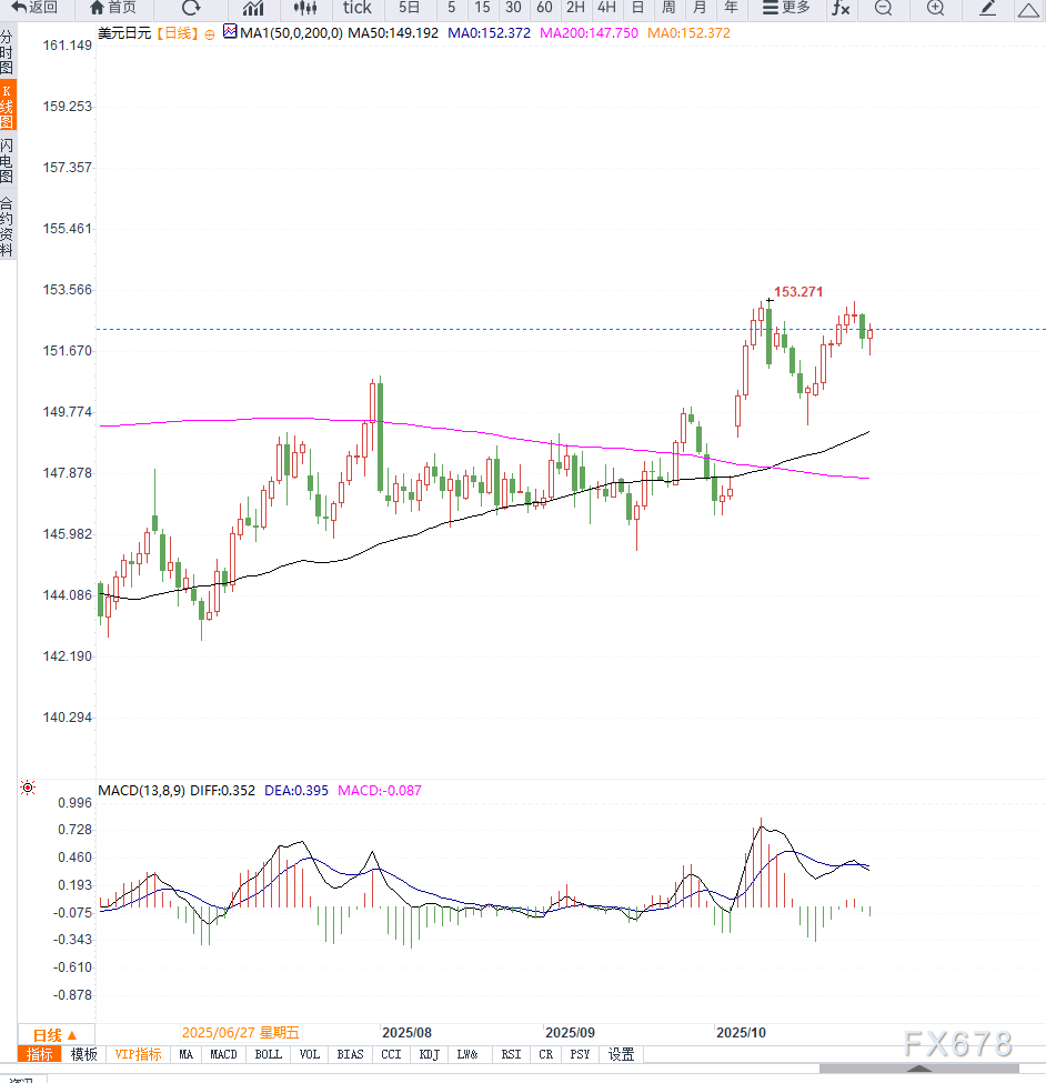 日元(JPY)在周三亚洲交易时段自一周高点回落,但跌幅有限。市场分析认为,日本央行可能暂缓紧缩政策,以配合新任首相高市早苗提出的财政扩张计划,这一政策取向暂时削弱了日元的避险吸引力。 ![]() 日本经济再生大臣木内登英(Minoru Kiuchi)周二的发言引发市场猜测,日本政府可能干预汇市以阻止日元过度贬值。他强调,汇率应当反映经济基本面,避免短期剧烈波动。 美国财政部长斯科特·贝森特(Scott Bessent)则表示,美国希望日本给予央行足够政策空间以稳定通胀预期,这被视为美国方面对日本政策的温和施压。 此外,美国总统特朗普与日本首相高市早苗签署了一项稀土及关键矿产供应合作协议,这在短期内提振了日元对主要货币的表现。 从政策前景看,市场认为日本央行可能在12月或明年初实施加息,形成与美联储的政策分化。而高市早苗的财政刺激计划则可能延缓这一进程,使得日元走势出现分化。 从日线图形来看,美元兑日元在153.30区域形成双顶形态,短线存在回调压力。若汇价跌破151.10-151.00支撑区,将打开进一步下行空间,目标指向150整数关口; 反之,如突破152.90-153.00区间并站稳153.30上方,则可能触发新一轮上攻,目标指向154.75至155.00区域。 ![]() 当前美元兑日元的走势主要受两大因素制约——美国降息预期与日本财政扩张政策的博弈。短期内,日元可能在150至153区间波动。若日本央行在年末释放更强的加息信号,而美联储继续放松政策,则日元有望在年底前重拾升势。 |
