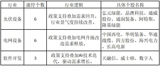 (注:行业涨停板个股越多,说明该行业被资金重点关注,是当前热门行业。) 从概念特征来看,今日涨停板个股中,业绩增长、光伏、机器人概念的个股最多。
