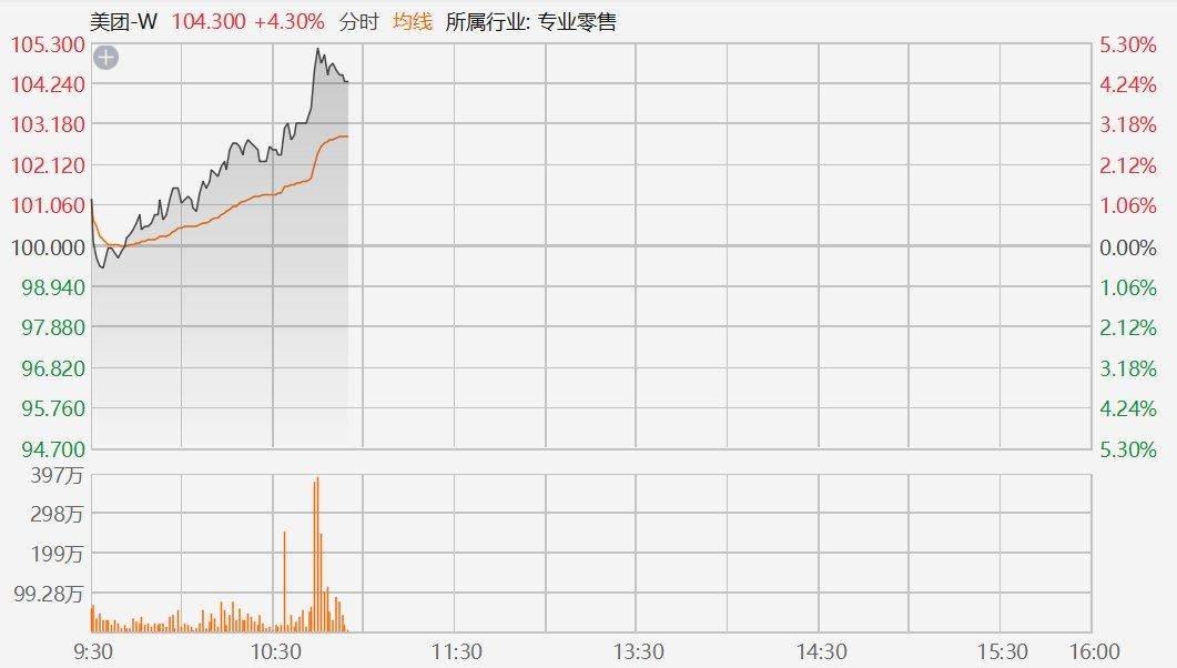 格隆汇10月30日|美团(3690.HK)拉升涨超5%,报105.3港元。