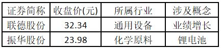 (注:行业涨停板个股越多,说明该行业被资金重点关注,是当前热门行业。) 从概念特征来看,今日涨停板个股中,业绩增长、锂电池、福建自贸/海西概念的个股最多。