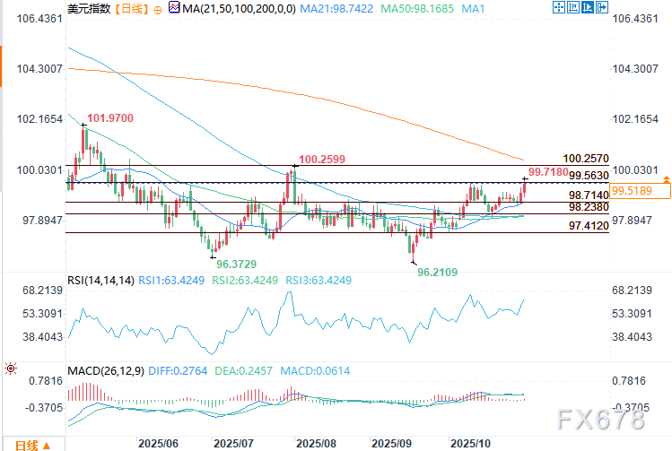 周四(10月30日)交易时段,美元指数触及8月初以来的最高水平,短暂突破10月9日的震荡高点99.563后,在99.724附近遇阻。周三的上涨势头延续至早盘,交易员对美联储的最新信号及交叉货币的走弱作出回应。 ![]() 周三,美联储主席鲍威尔对未来降息持更为谨慎的态度,美元因此获得提振。尽管美联储如预期降息25个基点,将联邦基金利率目标区间调整至3.75%-4.00%,但鲍威尔在会后的言论给鸽派预期泼了冷水。 “12月会议进一步下调政策利率并非既定事实,远非如此。”鲍威尔警告称,其依据是美联储内部存在分歧,且持续的政府停摆导致数据缺失。这一表态令此前押注降息的交易员措手不及,截至周四,12月降息概率从85%降至71%。 收益率反映美联储谨慎立场 国债收益率与美元同步攀升。10年期国债收益率上涨逾2个基点至4.087%,2年期国债收益率小幅上行至3.612%。这种温和的曲线陡峭化表明,市场正在重新评估美联储年底前降息的幅度和速度。由于鲍威尔暗示不确定性且联邦公开市场委员会(FOMC)内部存在异议,交易员对追逐鸽派叙事的信心有所下降——至少目前是这样。 政策分化推动美元/日元飙升、欧元下跌 日本央行维持政策不变,且未就未来加息提供明确指引,令市场失望。此后,美元/日元大涨1.1%至154.31,创2月以来新高。植田和男行长关于12月可能收紧政策的暗示缺乏说服力,交易员更关注其政策缺乏紧迫性的特点。日本央行的耐心与鲍威尔对降息的压制形成政策分化,推动美元/日元大幅上涨,进而强化了美元的整体强势。 欧元也未能给美元空头提供支撑——欧洲央行连续第三次维持利率不变,且未给出前瞻性指引,欧元/美元随即下跌。交易员将该声明解读为欧洲央行已结束加息周期的信号,推动欧元跌至10月14日以来的最低水平。 多头瞄准100.25——但需关注收益率 ![]() 展望下周,美元指数的走势仍偏向上行,但不会一帆风顺。若收益率维持当前水平或进一步攀升,且鲍威尔的谨慎态度持续压制12月降息预期,那么美元指数向100.257推进的路径仍将有效。 需警惕债券市场反转的迹象,或美联储官员淡化鲍威尔言论的表态——这可能导致美元回落至支撑区间。目前来看,逢低买入的投资者仍在积极入场。 |