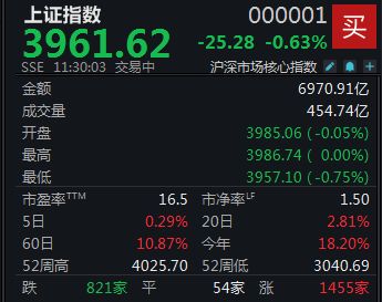 每经记者|刘明涛 每经编辑|肖芮冬 10月31日,A股震荡走低,前期强势科技股多数回调。截至上午收盘,上证指数跌0.63%报3961.62点,深证成指跌0.62%,创业板指跌1.49%,沪深300跌1.02%,北证50涨3.43%,科创50跌2.51%,中证A500跌0.8%。A股半日成交额1.58万亿元。