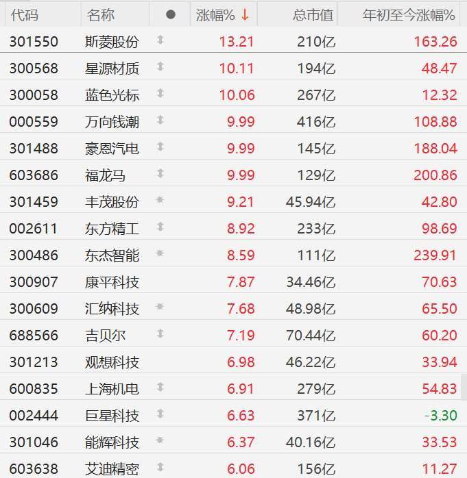 格隆汇10月31日|A股市场机器人概念股走强,其中,斯菱股份涨超13%,星源材质、蓝色光标涨超10%,万向钱潮、豪恩汽电、福龙马10CM涨停,丰茂股份涨超9%,东方精工、东杰智能涨超8%,康平科技、汇纳科技、吉贝尔涨超7%。消息面上,2025中国机器人产业发展大会(CRIC2025)将于11月10日至12日在上海跨国采购会展中心召开,主题为“构建开放协同的智能机器人产业发展生态”。