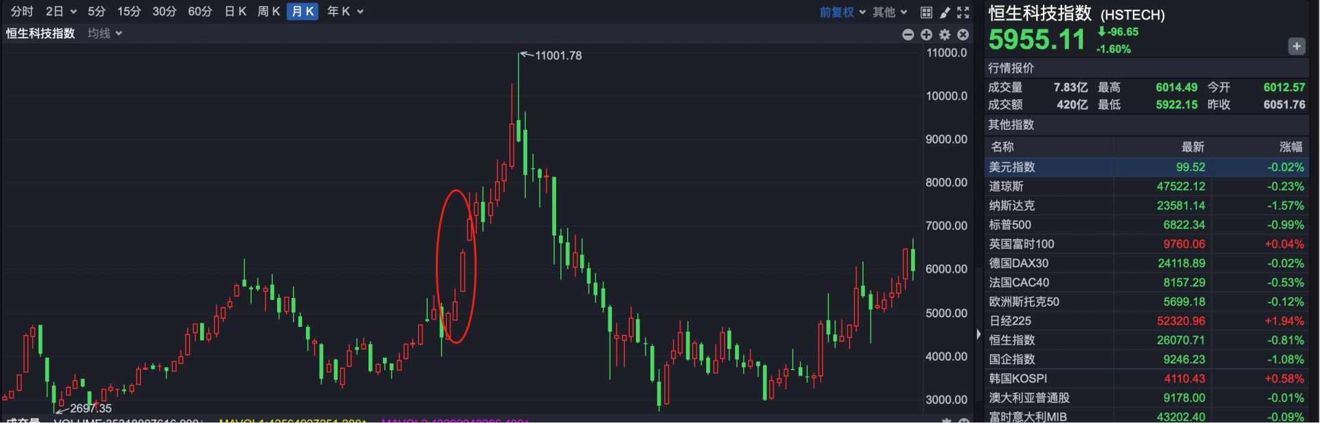 每经记者|曾子建 每经编辑|袁东 今天是10月行情最后一天,初步打个总结,恒生指数本月累计跌了约3%,恒生科技指数累计跌了约8%。如果从高点算起,恒生科技指数最大跌幅近15%。 一个月前,有朋友很兴奋地问我,阿里和腾讯还能不能买。而最近,又有朋友问我,恒生科技是不是不行了,要不要撤退?其实,问我这两个问题的就是同一个人。他的心情我很能理解,眼看利润逐渐缩水,现在又临近年末,谁不想保住到手的利润? 进一步说,对港股的科技股感到焦虑,这是在所难免的。纳斯达克天天新高,消息面还有重大利好落地,港股近期实在太弱,换作任何人,谁能不焦虑?另外,有色、银行、保险、煤炭等周期品种走强,难道说市场风格要换了? 不过,对于港股科技股,我是这样想的。 先问问自己,我们当初为什么买香港科技股? 抛开估值洼地不说,之所以买香港科技股,很重要的原因是稀缺性。恒生科技指数的前十大成分股:阿里、中芯国际、腾讯、美团、网易、比亚迪股份、小米、京东、快手和百度。除了中芯国际和比亚迪在A股能买到,其他只有在港股投资最方便。正是因为这种稀缺性,今年才有上万亿的南向资金净买入港股,而买得最多的,主要就是阿里、腾讯等科技股了。