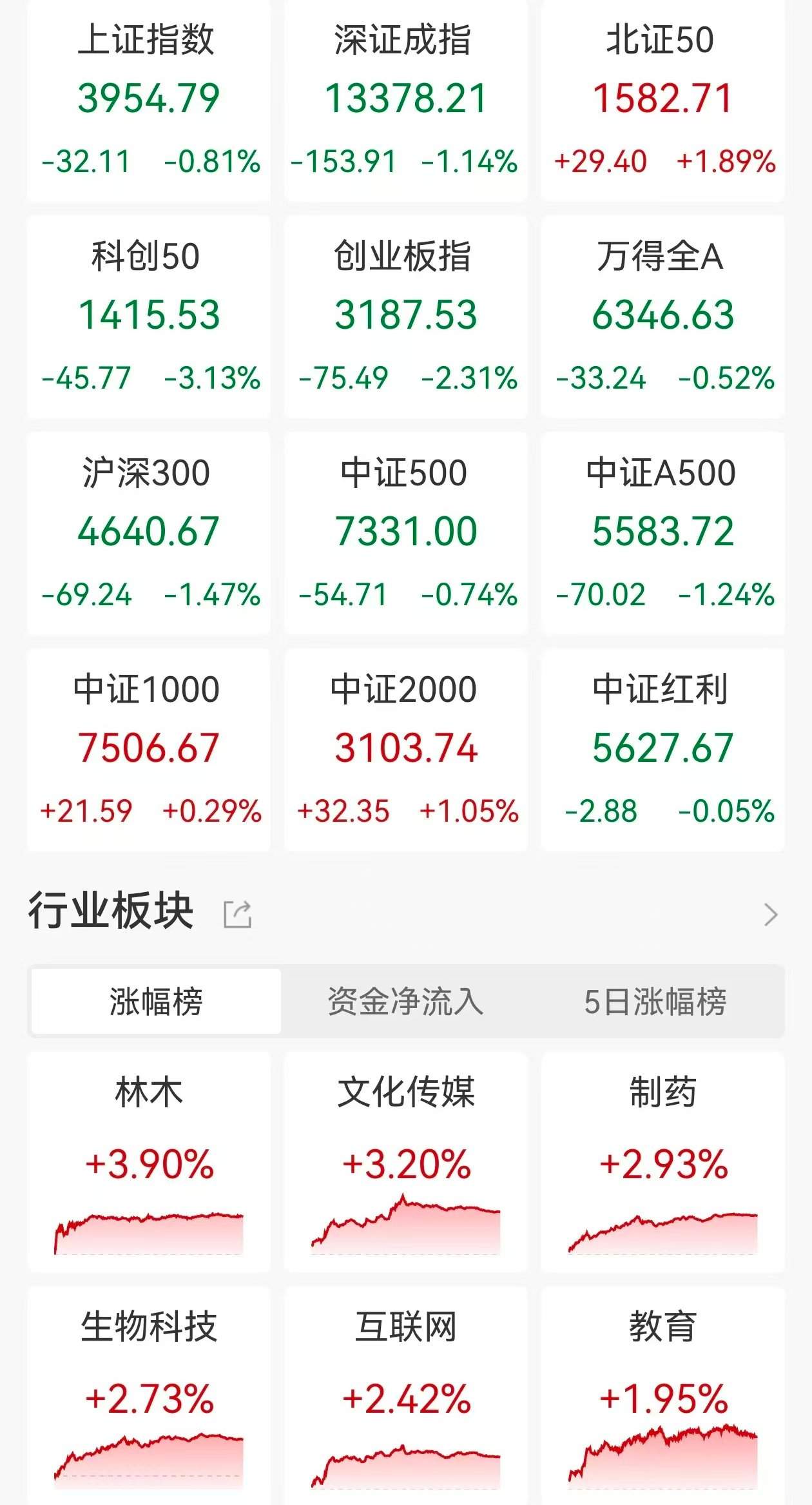 盘面上,AI语料、Kimi概念走高,福昕软件、荣信文化等多股涨停;创新药板块爆发,舒泰神、众生药业及联环药业等多股涨停;生物制品、重组蛋白板块拉升,三生国健20CM涨停;文化传媒板块走强,欢瑞世纪、粤传媒等多股涨停;短剧概念、拼多多概念及病毒防治等板块涨幅居前。另外,HBM概念、存储芯片板块走低,盛美上海、澜起科技领跌;CPO概念走弱,德科立跌逾11%;培育钻石板块下挫,力量钻石跌逾8%;小金属板块走势低迷,中钨高新跌停;超导概念、被动元件、稀土永磁、量子科技及可控核聚变等板块跌幅居前。(格隆汇) (责任编辑:宋政 HN002)