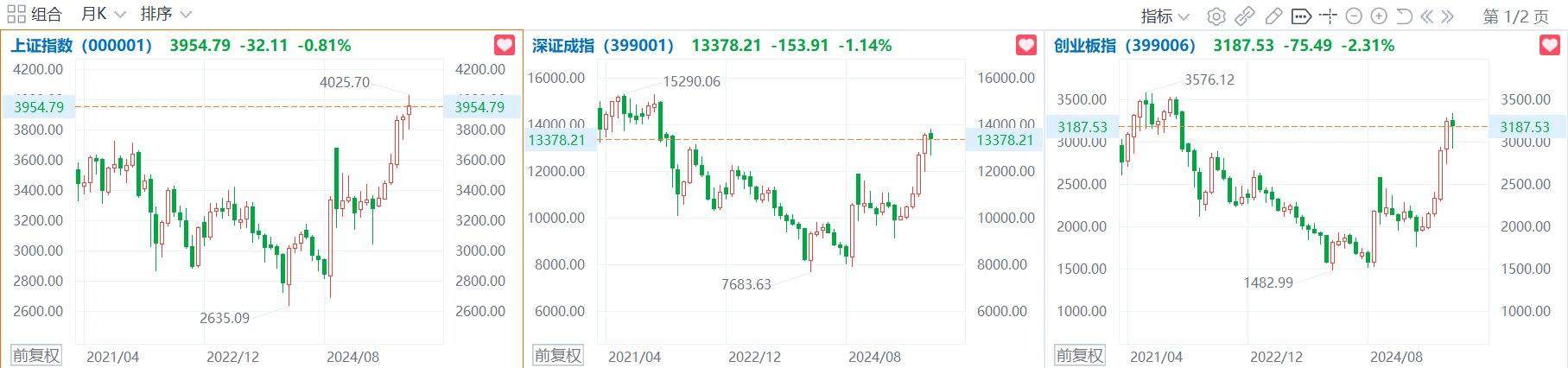 格隆汇10月31日|A股三大指数10月份收盘涨跌不一,沪指涨1.85%报3954点,月内一度站上4000点创十年新高,为连续第六个月录得上涨,今年累涨近18%;深证成指跌1.1%报13378点,今年累涨28.46%;创业板指跌1.56%报3187点,今年累涨48.84%;深证成指、创业板指均为5个月以来首次月度下跌。10月份,科创50指数跌5.33%,北证50指数涨3.54%。