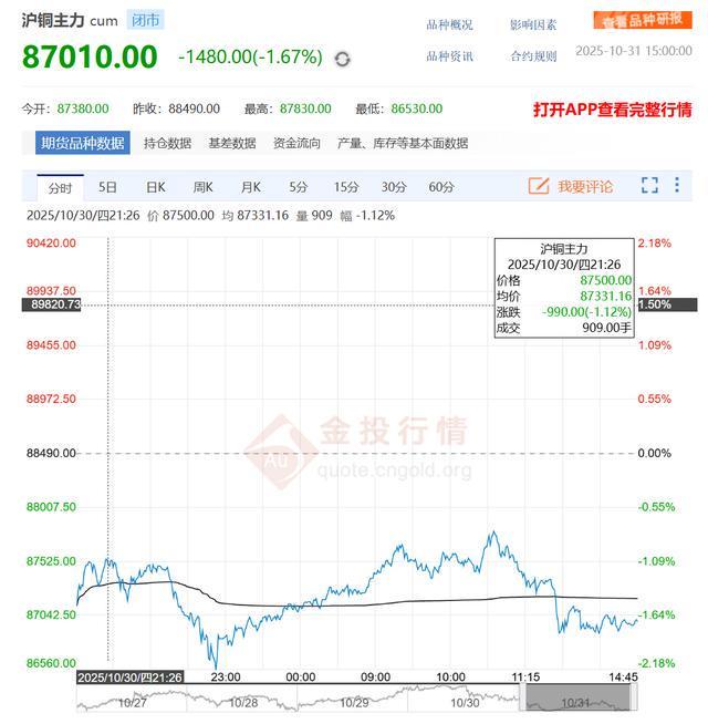 2025年11月1日沪铜主力最新价格及行情: 11月1日,上海期货交易所沪铜主力合约(CU888)呈现“高开低走、震荡下行”的弱势格局,当日以87380元/吨开盘,早盘短暂冲高至日内高点87830元后快速回落,午后在空头主导下下探至86530元的日内低点,最终收报87010元/吨,较前一交易日下跌1480元,跌幅1.67%,日内波幅达1300元,创下近两周以来最大单日波动区间。从价格形态看,沪铜主力合约已连续三日收阴,且跌破5日均线与10日均线支撑,技术面呈现“破位调整”特征,市场短期情绪偏向谨慎。 产业链股票深度调整 龙头企业领跌市场 A股铜产业链相关上市公司当日同步承压,板块内超80%标的收跌,且权重龙头调整幅度显著大于小盘品种。江西铜业(600362)作为国内铜冶炼龙头,当日低开低走,收报41.09元/股,下跌2.26元或5.21%,换手率放大至3.5%,创三个月来新高,其下跌主要受冶炼业务盈利预期收缩影响——沪铜主力合约价格下跌直接压缩冶炼加工费(TC/RC)的弹性空间,三季度财报显示公司铜加工业务毛利率已环比下降0.8个百分点。铜陵有色(000630)同步大跌4.17%,收报5.29元/股,公司作为国内电解铜产能最大的企业,受铜价下跌与库存减值压力双重拖累,年内累计跌幅已达18%。 细分领域中,铜箔、铜加工等下游企业调整更为剧烈,铜冠铜箔(301217)单日暴跌8.81%,收报35.00元/股,反映新能源汽车产业链对锂电铜箔需求的担忧加剧;北方铜业(000737)、金田股份(601609)分别下跌3.68%、0.43%,显示传统铜加工业务同样面临消费疲软压力。唯一逆势上涨的铜冠矿建(920019)微涨0.37%,收报21.84元/股,其抗跌性或与其矿山工程业务占比提升有关,该业务受铜价波动影响较小,且近期中标多个海外铜矿建设项目,形成独立行情。 跨境市场联动性分化 港股跌幅显著大于A股 铜产业链资产的跨境联动性在当日呈现显著分化。港股江西铜业股份(00358)当日大跌5.91%,收报32.460港元/股,跌幅远超A股母公司(5.21%),反映港股市场对铜价下跌的反应更为敏感,叠加人民币汇率波动影响,AH股溢价率当日扩大至12%,创年内新高。美股市场的南方铜业(SCCO)则相对抗跌,仅微跌1.11%收报140.110美元/股,主要受美国本土基建投资预期支撑,市场对北美铜需求的乐观情绪部分抵消了国际铜价下跌的压力。 COMEX铜期货合约分化 近月合约承压更显著 国际铜期货市场呈现“近弱远强”的分化格局。COMEX铜近月合约(2503HG25H)当日收报5.0745美元/磅,下跌0.0295美元或0.58%,与沪铜主力合约调整节奏基本一致;而远月合约(2505HG25K)则微涨0.01%,收报5.0785美元/磅,显示市场对远期铜价仍存分歧——短期受宏观经济数据疲软压制,但长期新能源产业链需求增长预期支撑远月合约价格。这种合约间价差结构(近月贴水)反映市场对短期铜库存累积的担忧,截至10月底,LME铜库存已连续五周回升,当前库存量较上月增长12%至16.8万吨,供应端压力对近月合约形成直接压制。 综合分析:短期承压与长期支撑并存 总体来看,11月1日铜产业链资产价格调整主要受三方面因素驱动:一是国内房地产数据不及预期压制铜消费需求,10月房地产新开工面积同比下降6%,拖累建筑用铜需求;二是美元指数反弹至106.5高位,以美元计价的国际铜价承压;三是市场对美联储11月加息预期升温,贵金属与工业金属同步遭遇流动性收紧压力。不过长期来看,铜价仍具备结构性支撑——全球铜矿品位下降导致矿产铜供应增速放缓,而新能源汽车、储能等领域的铜需求年复合增长率预计维持在8%以上,供需紧平衡格局或在2026年进一步凸显。投资者需关注11月美国非农数据与国内基建投资增速,这两大变量将主导铜价短期走势的方向选择。 沪铜主力最新价格:
