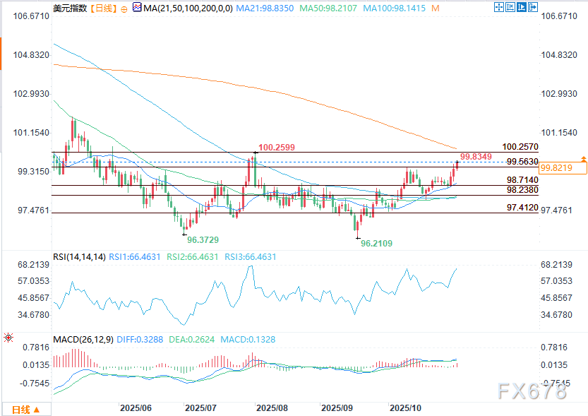 周五(10月31日),美元指数连续第三个交易日上涨,午盘时段触及99.844,逼近8月1日创下的100.257高点。政策制定者的谨慎言论降低了市场对美联储今年再次降息的预期,成为此次反弹的主要驱动力。 ![]() 美联储周三将基准利率下调25个基点,至3.75%-4.00%区间,为三年来最低水平。美联储主席鲍威尔随后向记者表示,12月再次降息“远不确定”,并指出美国政府持续停摆正限制政策评估所需关键经济数据的获取。 美联储官员对进一步宽松存在分歧 两名美联储官员对本周的降息决定投了反对票,凸显出央行内部政策分歧日益加剧。堪萨斯城联储主席杰弗里·施密德(Jeffrey Schmid)和达拉斯联储主席洛里·洛根(Lorie Logan)均反对此次降息,理由是通胀压力持续存在且金融环境保持韧性。 施密德指出,股市走强、企业债券利差收窄以及信贷发行强劲,均表明金融环境仍处于宽松状态。洛根补充称,未来降息需有“明确证据”表明通胀减速加快或劳动力市场显著放缓。 市场定价已对此作出剧烈反应。据芝商所美联储观察工具显示,12月再次降息的概率已从一周前的92%降至63%。 美联储决议后,国债收益率保持坚挺 周五,10年期美国国债收益率在盘中短暂触及4.10%后,稳定在4.089%附近。2年期国债收益率跌至3.594%,30年期国债收益率维持在4.659%左右。收益率从此前低于4.00%的低点回升,凸显出投资者质疑:若没有新数据显示经济增长或通胀走弱,美联储是否会继续宽松政策。 美元走强,全球主要货币承压 在全球市场中,美元表现优于其他主要货币。日元兑美元报154.125,10月累计下跌4%,为7月以来最差月度表现,尽管东京核心通胀同比上涨2.8%。日本央行维持利率不变的决定对日元几乎没有支撑作用。 英镑兑美元下跌0.2%,报1.312,月度跌幅有望达到2.3%,投资者正等待财政大臣雷切尔·里夫斯(Rachel Reeves)即将公布的预算案。欧洲央行连续第三次会议维持利率在2%不变,强化了美元的收益率优势,欧元兑美元持平于1.1562。 市场展望:11月美元仍偏看涨 ![]() 美联储鹰派言论、坚挺的国债收益率以及与其他主要经济体的利率差异,继续支撑美元走强。若美元指数持续突破100.257,可能会吸引更多动能买盘。 受美国政府停摆导致数据发布受限、额外宽松预期降温影响,11月美元仍维持看涨倾向。 |