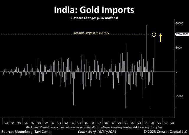 因为从今年以来,中国上海黄金交易所的成交量相比于2024年暴增了25倍,原因在于海外的黄金交易所为了打压黄金价格,不断提高保证金比例。 现如今上海黄金交易所已经夺取了对于黄金的定价权,国际资本更愿意通过香港或者上海交易来对黄金进行投资和交割。 印度狂买黄金:莫迪的“卢比保卫战”与全球去美元化暗流 除了中国之外,印度对于去美元化也展现出了坚定的意念。