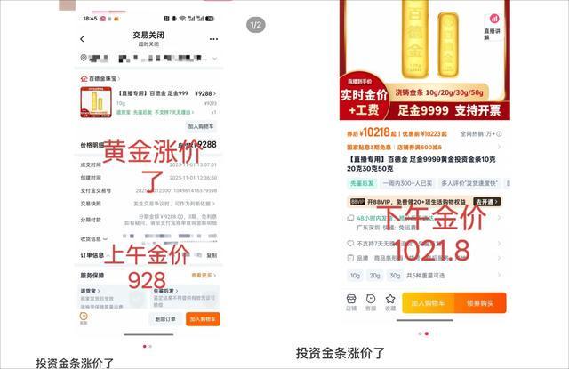 10克金条上午还是9280元,下午变成了10218元!