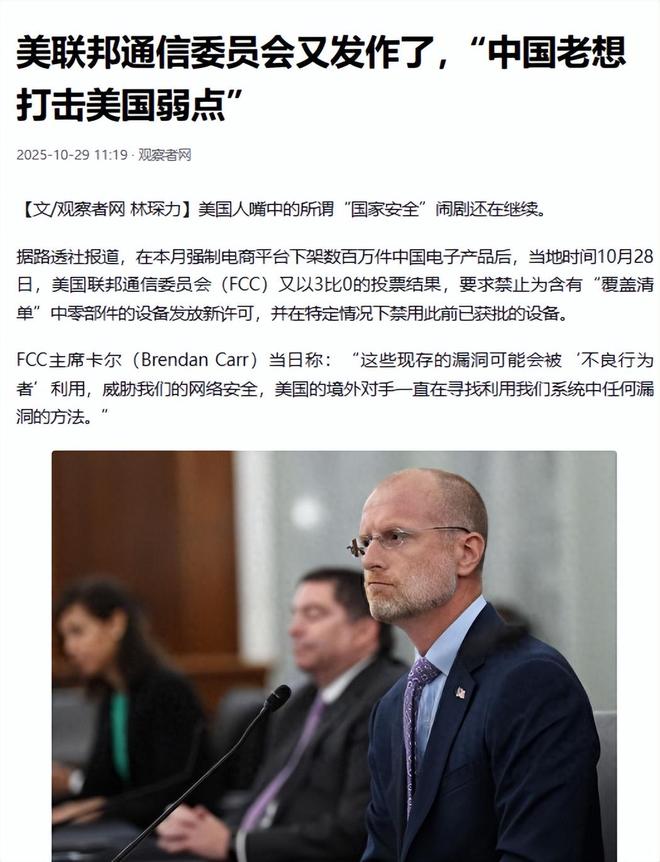特朗普又变卦 美国联邦通信委员会(FCC),突然以大家已经听得耳朵起茧的“国家安全”为理由,发布了全新的规定。 新规的核心内容是,禁止为含有特定中国零部件的设备发放新许可。 这意味着什么?意味着许多中国制造的消费电子产品,未来进入美国市场的大门被焊死了。 更狠的是,那些已经获得许可的同类设备,也面临着随时被禁用的风险。