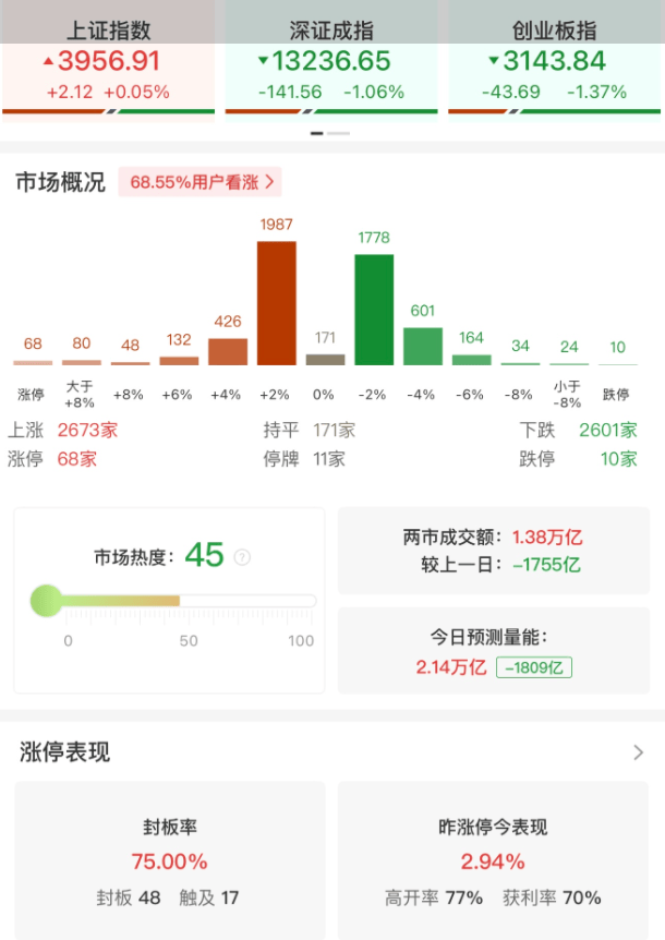 格隆汇11月3日|A股三大指数早盘涨跌不一,截至午间收盘,沪指涨0.05%报3956.72点,深成指跌1.06%,创业板指跌1.37%,北证50涨0.07%。沪深京三市半日成交额13985亿元,较上日缩量1807亿元,全市场超2500只个股下跌。